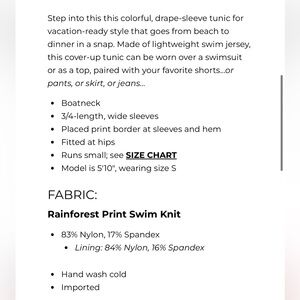 Trina Turk Rainforest Swim Tunic Size Small Brand New With Tags