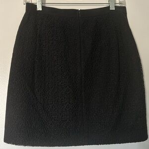 Great used condition, unique black texture skirt. Waist band has some stretch. Measures 17.5” long and 14” across flat.