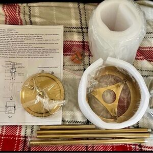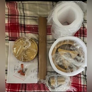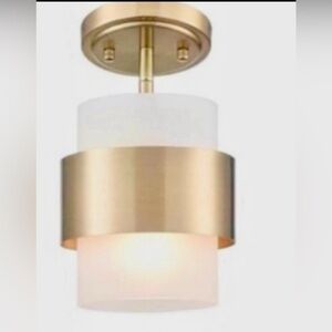 New deynite Modern Home Pendant Light Fixtures Hanging Light for Kitchen Island. body with brass metal, this hanging pendant light is ideal for modern, retro or industrial decor and adds a modern look while illuminates your room to create the perfect atmosphere to any residential or commercial decor.retails for $119.99. Unpacked ceilings mount to show the color gold. Serious Offers only. New with hardware and instructions. My offer is $42 less than Amazon. That’s a 35% savings