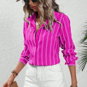 Hot Pink Casual Women's Striped Long Sleeve Shirt