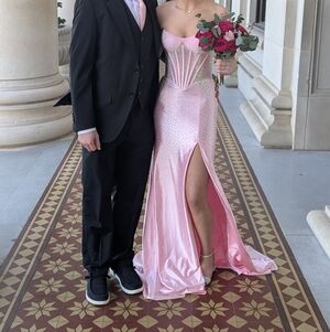 Universal Threads deep Turquoise dress. Has a pattern but same color as background so blends nicely. Has a "v" neck and elastic 3/4 sleeves. Size medium