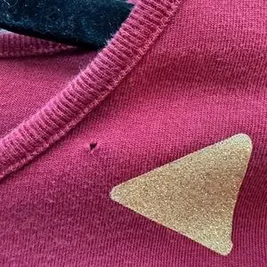 Adorable kitty dress with gold detailing. There are two tiny holes in the dress, both pictured. There is still lots of life left in this dress!