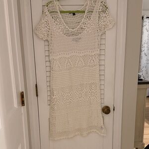 LOFT Shirt dress Navy Blue button down with a tie to accentuate your waist. Looks great with sandals or tall boots.