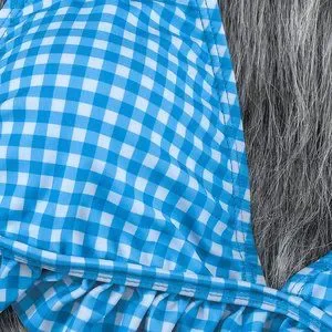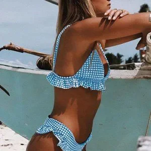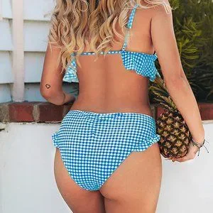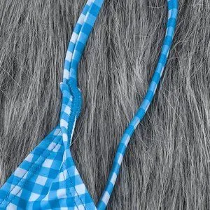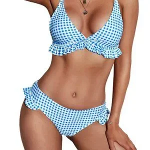 Sky Blue Plaid Ruffle Trim Triangle Bikini Set