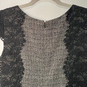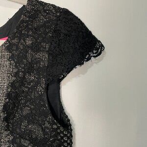 (NWOT) BETSY JOHNSON Lace Trim Sheath Dress, Black/Tweed - 6