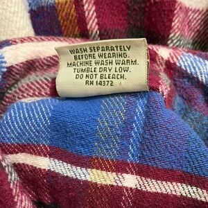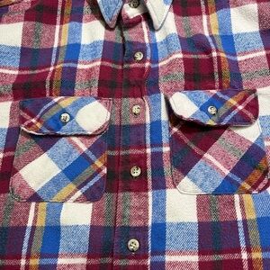 Vintage Five Brother Tallman flannel shirt. This flannel is heavy — not quite a shacket, but it’s getting there! Has two button-down front pockets and multiple colors: blues, deep red, green and yellow. Comes in size XL — please see photos for measurements. In great pre-owned condition! No holes, rips or stains — just minor fading/pilling due to washing. Offers are welcome!