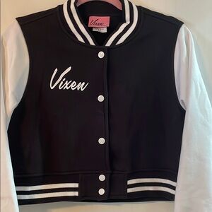 Vixen by Michelin Pitt, 2X Miss Kitty Maneater in black patent vinyl, first run with purple lining. Bust- 45-47.5”, Waist- 36-37.5”EUC