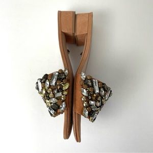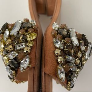 SCHUTZ Victoria Jewelled Embellished Leather Sandal Slides Size 7