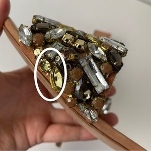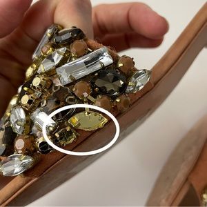 Good condition, but missing two jewels on inside of right shoe. See photos with white circles for detail