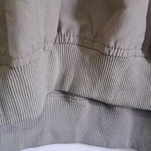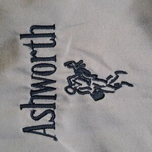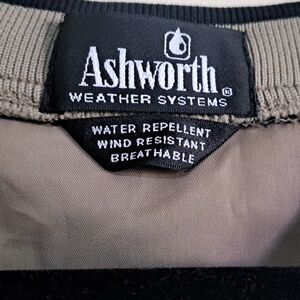 Ashworth wind and water resistant golf top Size L there is elastic around both of the wrists and the waste. There's also 2 accessible pockets on both sides & V neck stitched black-and-tan color really smooth soft. Perfect for upcoming fall