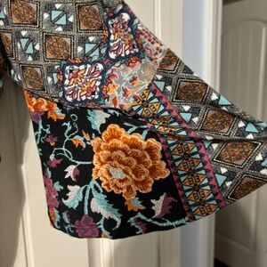 Cute blouse. 3/4 sleeves. End of sleeves flair. 96% polyester 4% spandex. Machine was cold dry -low