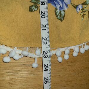 Mustard color with pink and blue flowers