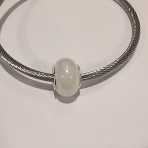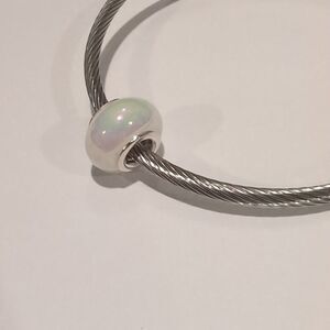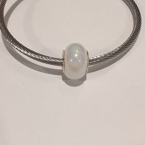 Silver White Pearlesque Charm for Pandora Style Bracelet