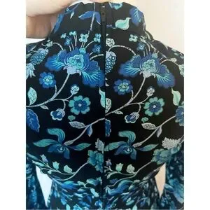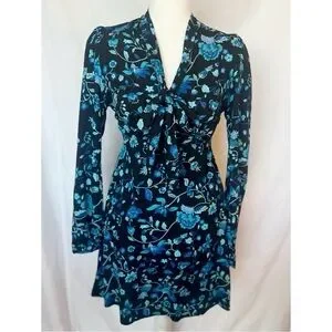 ✨This dress by London-based brand Motel Rocks is the perfect piece to give your wardrobe a kiss of vintage-inspired flare. Features include floral pattern in a palette of beautiful blues, V-neck with front sash ties that can be worn down or in a bow, fitted waist, long sleeves with button closure at wrist, and hidden rear zipper. Includes spare button still attached to tag.