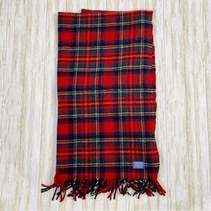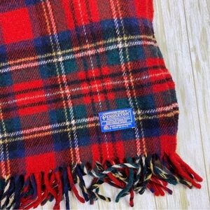 Pendleton Red Blue & Green Plaid 100% Wool Fringe Blanket