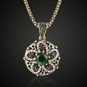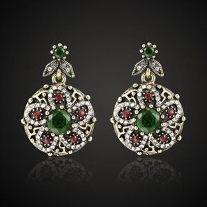 MATERIAL:BRONZE PLATED OVER ZINC ALLOY : This beautiful Flower set is HAND-MADE and RARE FIND.It is designed by insparation of Ottoman Empire Sultan's jeweleries. It is zinc alloy and antique bronze color looking which reproduce the charm of jewelry. The main stones are AAA Resin and Cyristals. It does not contain any Lead, Nickel, 0r Cadmium, which they are known toxins that can cause health problems over time.
