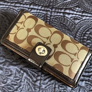 Coach wallet Y2K cloth brown tan bi fold wallet
