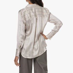 RAILS Dorian Silk Satin Stripe Blouse Womens Large Off White Long Sleeve