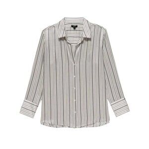 This classic striped shirt is ideal for any occasion, from work to the weekend and beyond. Made from silk charmeuse, it's reminiscent of wearing luxe silk pajamas in public. The best part is, it's designed to be styled in a plethora of ways, making it a tried-and-true staple in your closet.