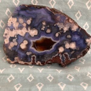 Blue Flower Agate Raw Crystal NWOT. 6” Long x 4” Wide.Bright blues.Amber Window.
