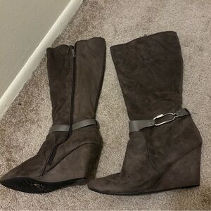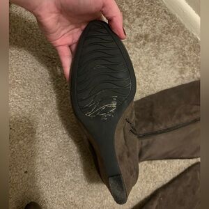 Brown Suede Knee-High Boot Heels. Zipper closure. 17 inches tall, 4 inch heel. Gently used.