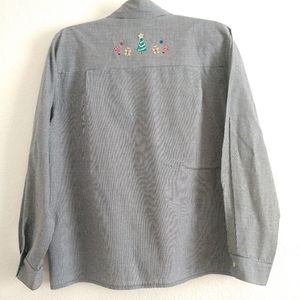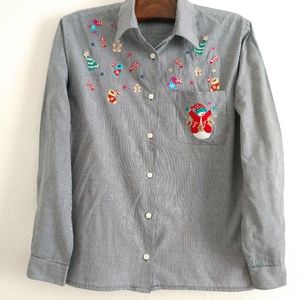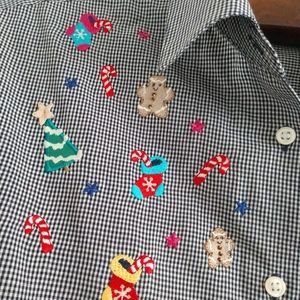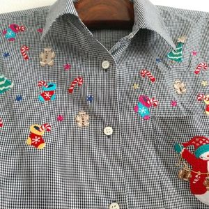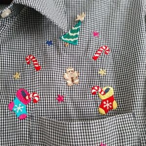Embroidered Christmas Shirt Black White Gingham Check by Karen Scott