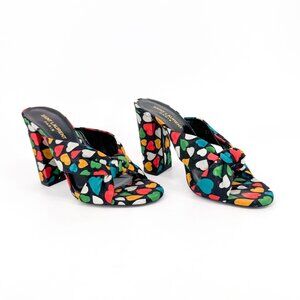 Sheer mesh upper with a multicolor woven fabric tweed-like pattern