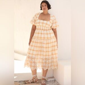 Anthropologie Puff-Sleeve Eyelet Midi Dress
