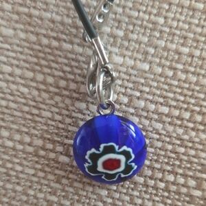 beige, tan, navy blue, dark brown, and a darker wood holding it together, one on each side! Smoke free.. Check out my closet to bundle or make an offer