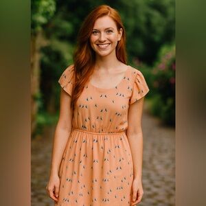 Lulus red, floral print wrap dress v neck short puff sleeve midi length sz L(10)