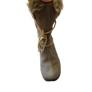 Mountrek Size 6.5M Taupe Mid Height Faux Fur Lace Around Boots W/Box