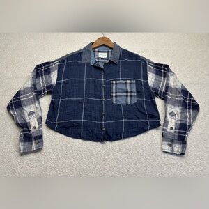 American Eagle Women’s Long Sleeve Flannel Shirt Size Small Blue