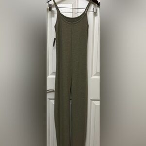 Roma Concept green ribbed jumpsuit with adjustable spaghetti straps.