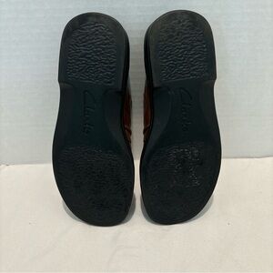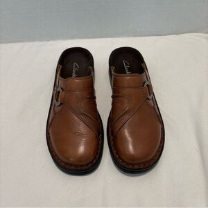 Clark’s brown leather mule shoes with button accent 5M