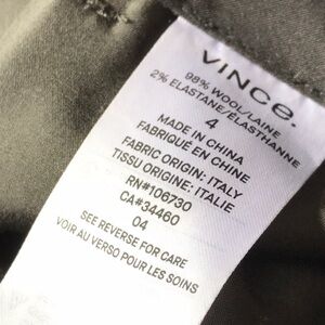 Vince classic trouser pant in a lovely shade of olive/dark grey size 4. Never worn. EUC