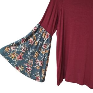 *SALE* EUC Luxe Maroon Floral Bell Sleeve Top Size L