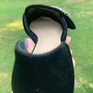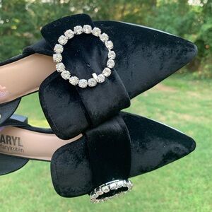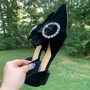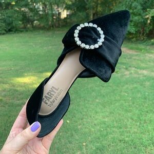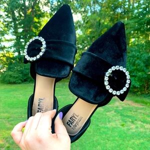 Velvet Pointed Rhinestone Ring Slip-On Loafers