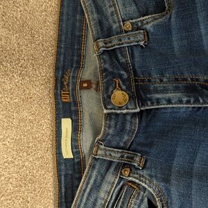 excellent condition. no pilling. no pocket wear. zipper and button closure. nice mid-stretch denim.