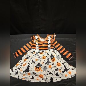Size 9-12 Months Baby Girl Halloween Dress Bats Witches Pumpkins Striped