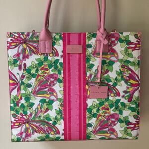 NWT Trina Turk Pink Butterfly Tote Bag with Handles and Crossbody Strap Floral