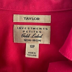 Investments Taylor Gold Label Non-Iron 3/4 Sleeve Button Front Shirt Red 10P
