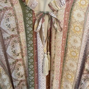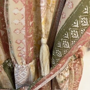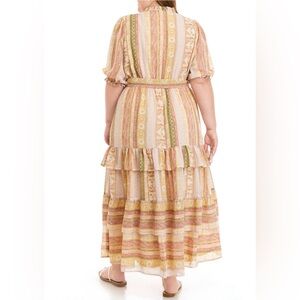 NWT New with Tags boho-chic tiered maxi dress in beige multi neutral pastels of yellow cream tan green and rose