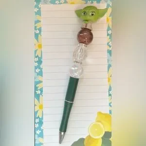 Beautifully handmade beaded pen that features the beloved “Yoda” from the Star Wars Collection. This pen is fun to have around and guaranteed to brighten any day!!