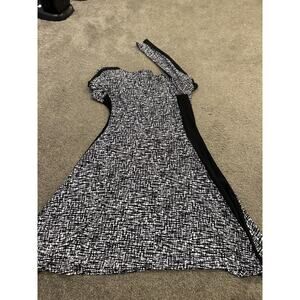Lauren Ralph Lauren Womens Black/White Abstract Long Sleeve A-Line Dress Size 12