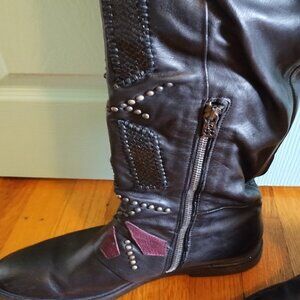 A.S.98 Carlyle Tall boots 38 7.5 Burgundy Black Leather Biker