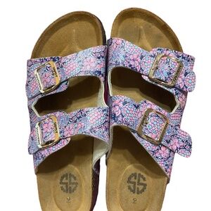 Simply Southern Floral Buckle Slip on Flip Flop Sandals Size 9 Pink/Blue