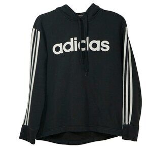 Adidas Black Three Stripe Hoodie Minimalist Street Wear Athletic Pullover Top