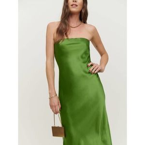 Reformation Joanne Silk Dress Green US4