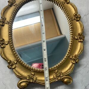 Vintage Syroco Gold Plastic Frame Carved Decorative Vanity Wall Mirror - 12.5 in