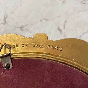 Add a touch of vintage Hollywood glamour to any room with this beautiful wall mirror. The oval-shaped mirror is framed in gold plastic and features a stunning floral design that will bring a sense of elegance to your space. Measuring 12.5 inches in length and 10 inches in width, this wall mirror is perfect for any room in your home. The mirror is an original piece from the mid-20th century and has been well-maintained over the years. It comes from the renowned brand Syroco and is a great addition to any collection of vintage furniture. Whether you're looking to decorate your vanity table or add a touch of glamour to your bedroom, this wall mirror is the perfect choice.